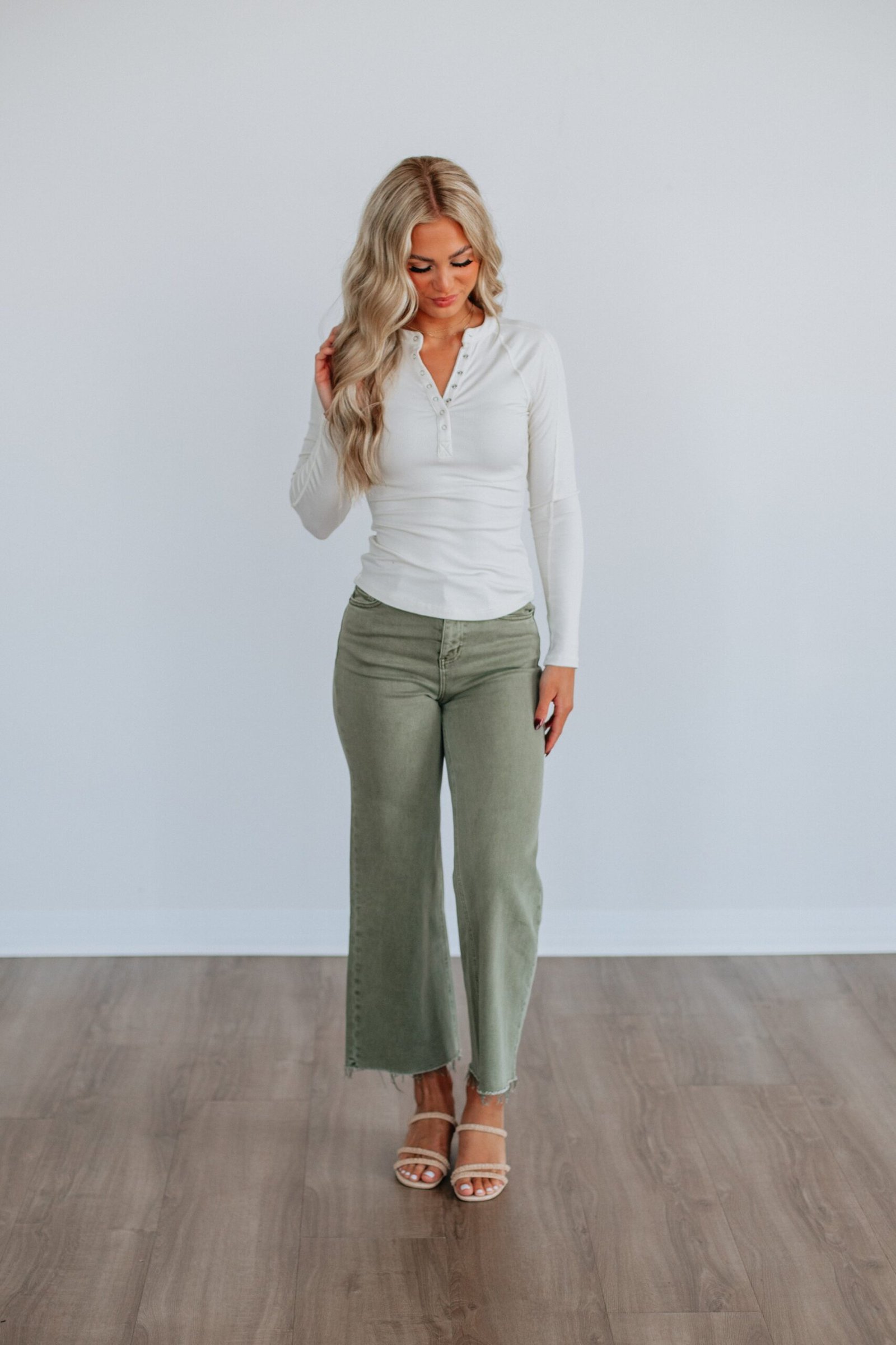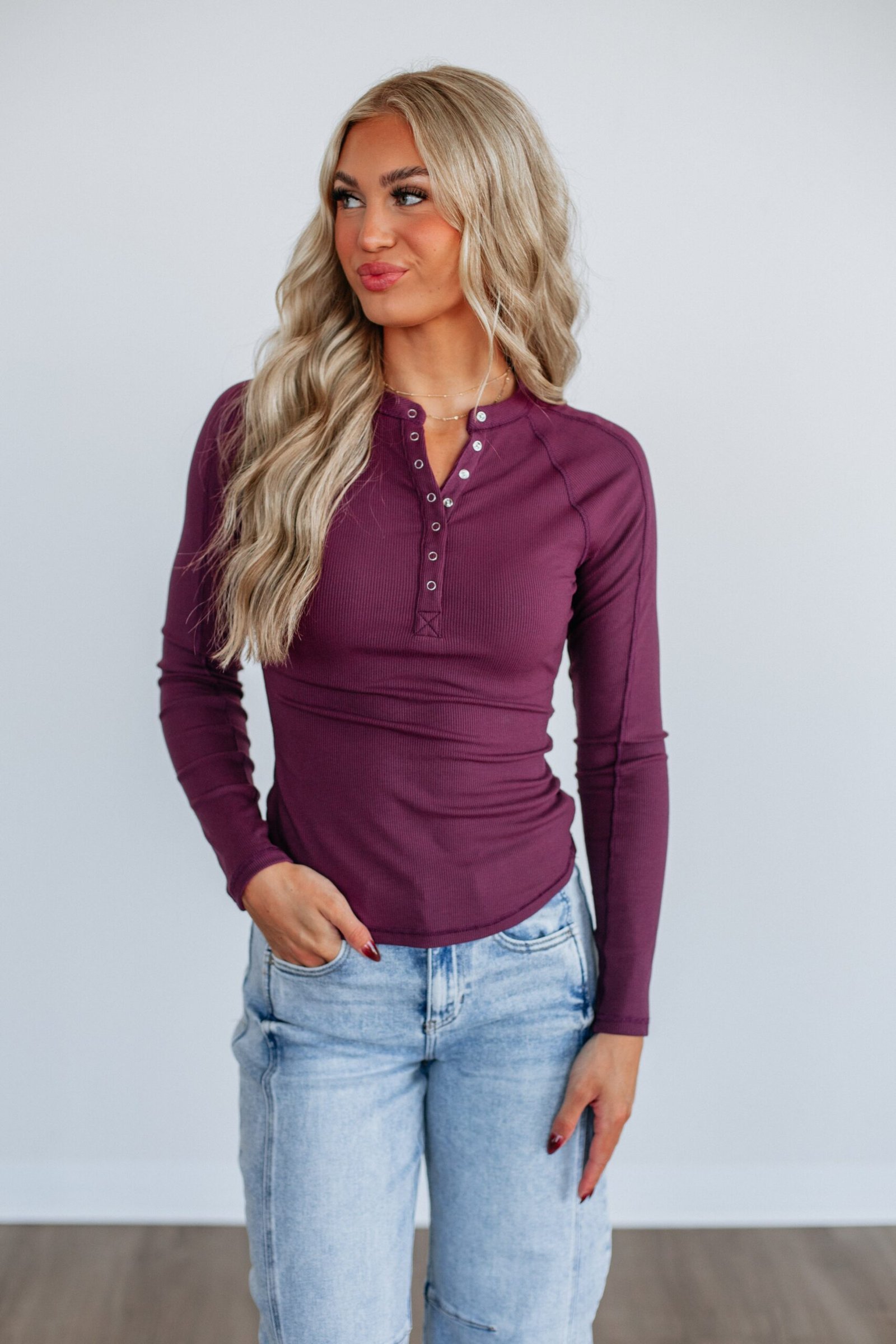 - Functional Henley Button Down Front